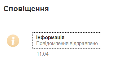 СМС буде відправлено, про що засвідчить сповіщення внизу екрана.