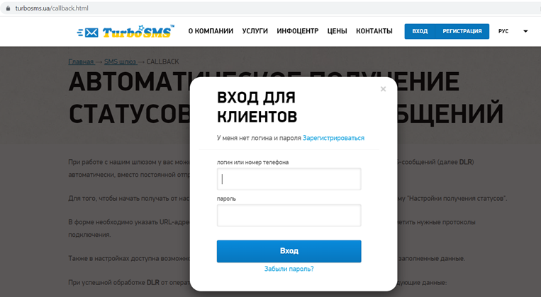 Якщо на даному етапі помилок не виявлено, потрібно зайти в Особистий кабінет на сайт провайдера СМС