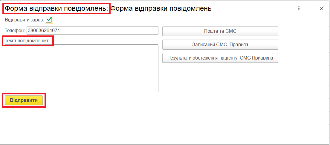 З’явиться вікно, в якому потрібно вказати текст повідомлення і натиснути «Відправити»