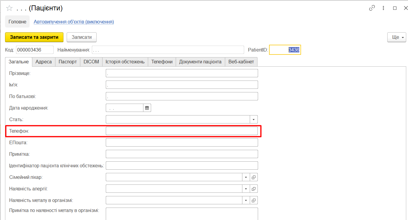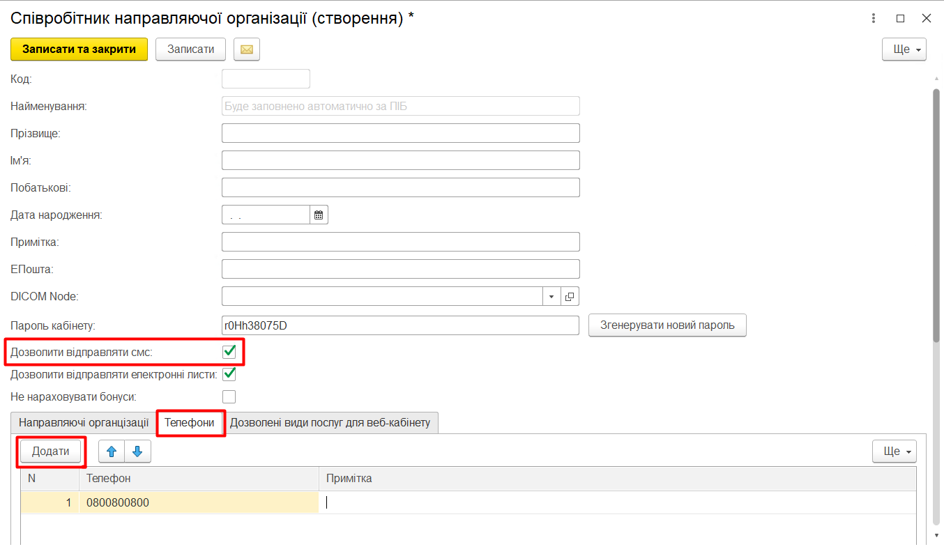 Щоб отримувач (пацієнт або направляючий лікар) отримав СМС повинні бути заповнені наступні поля: