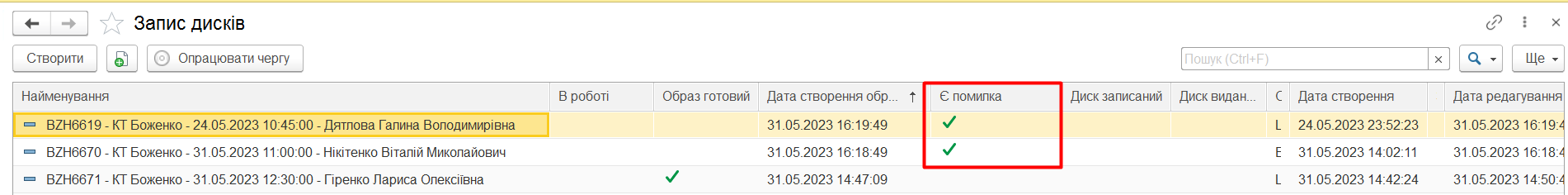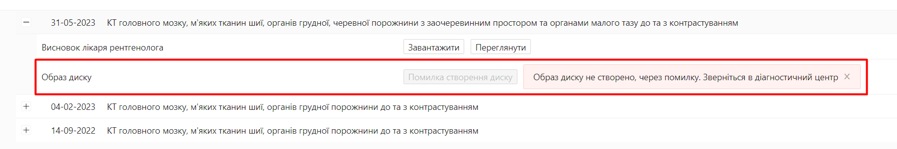 в таких випадках в особистих кабінетах не будуть створюватись диски з обстеженням пацієнта.