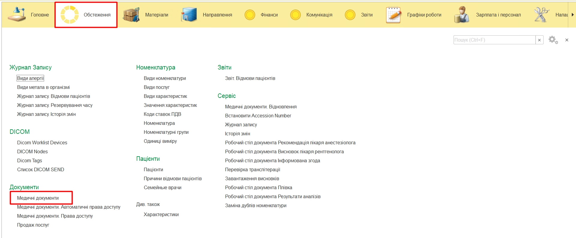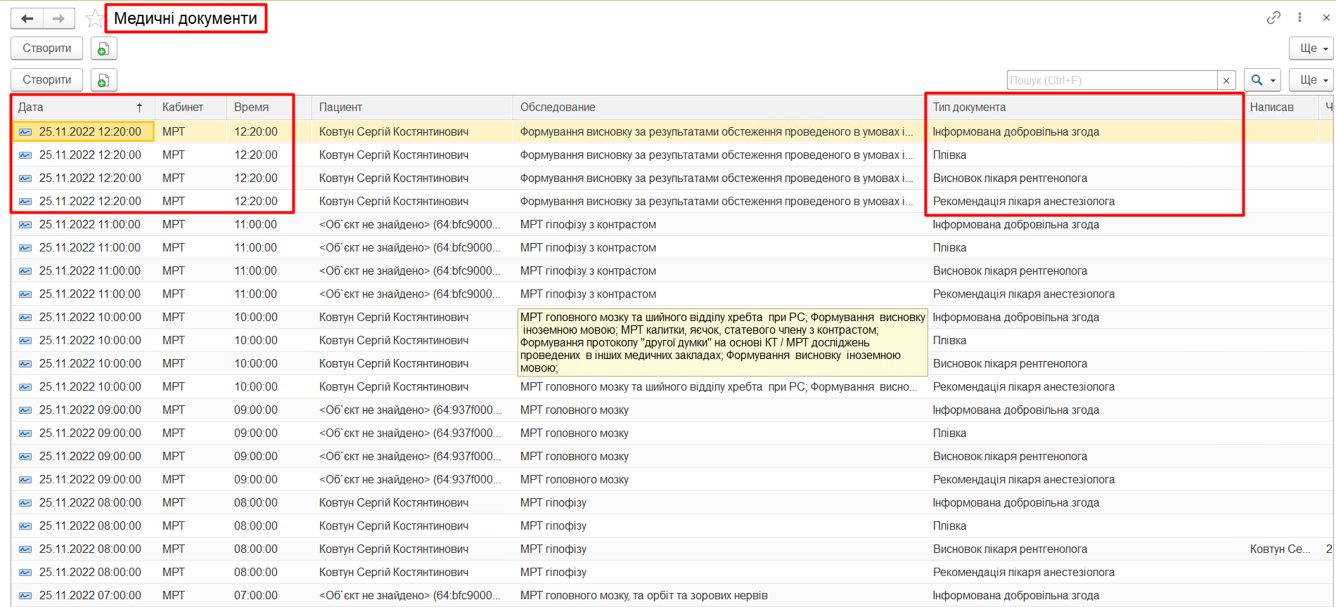 Довідник «Медичні документи» призначений для збереження всіх типів документів. Довідник знаходиться в меню «Обстеження» - «Медичні документи»