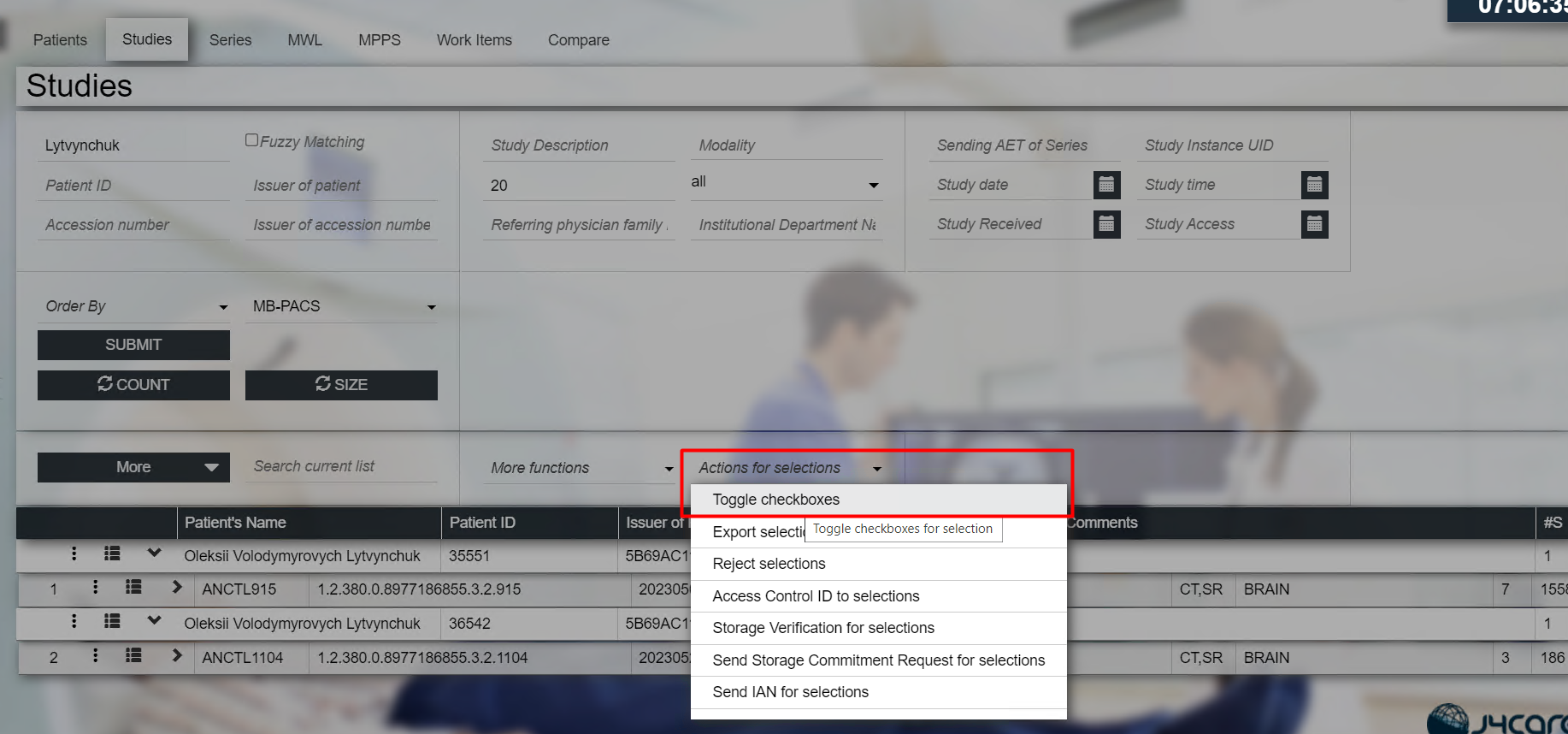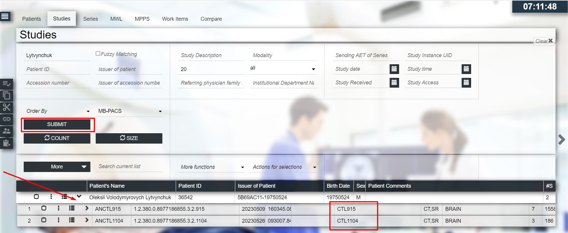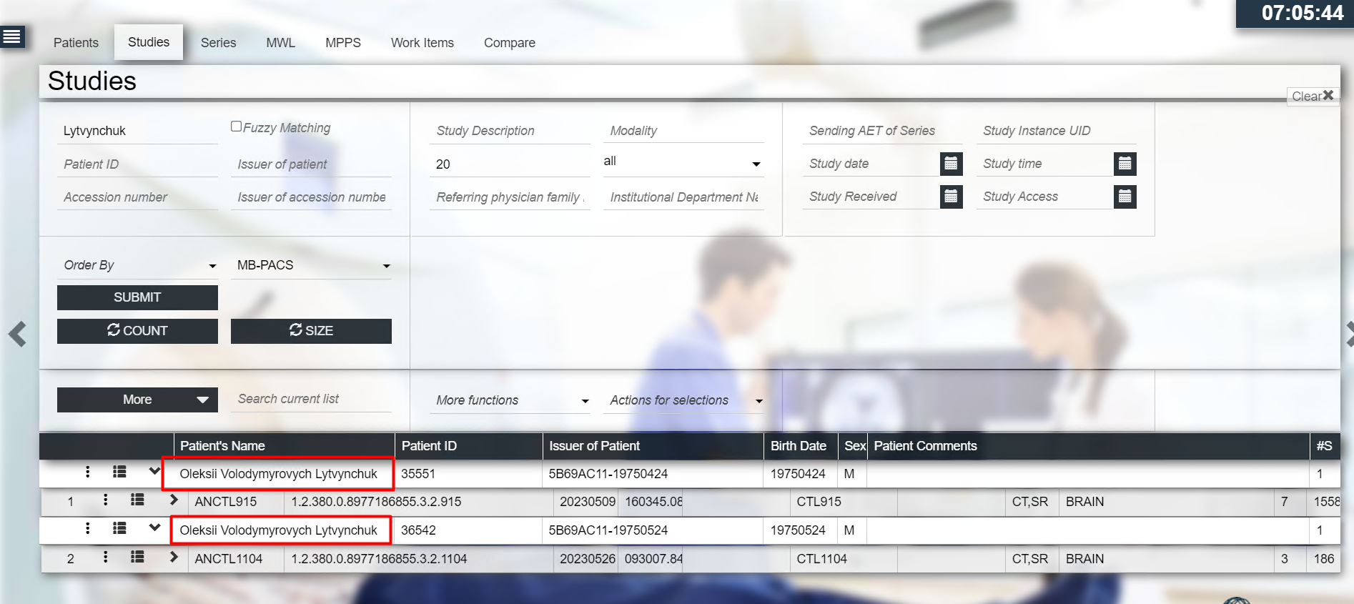 Потрібно перевірити та виправити пацієнтів і їх обстеження на PACS та в МІС.