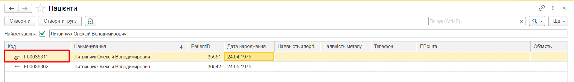 Об'єднання Дублей Пацієнтів можливо зробити через пошук всіх дублів, або за вказаним алгоритмом: