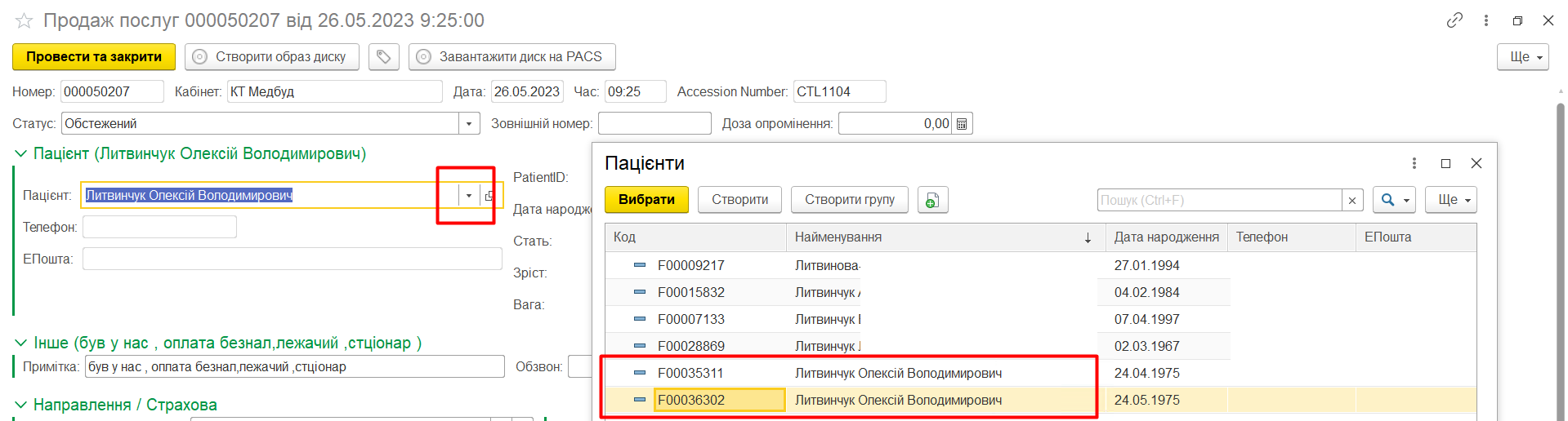 Потрібно перевірити та виправити пацієнтів і їх обстеження на PACS та в МІС.