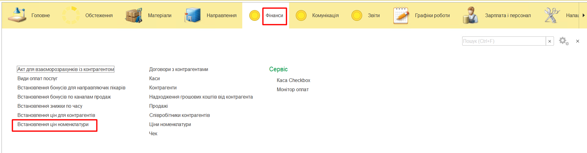 Для того, щоб оновити ці параметри використовується документ «Встановлення цін номенклатури», який знаходиться в розділі «Фінанси» - «Встановлення цін номенклатури»