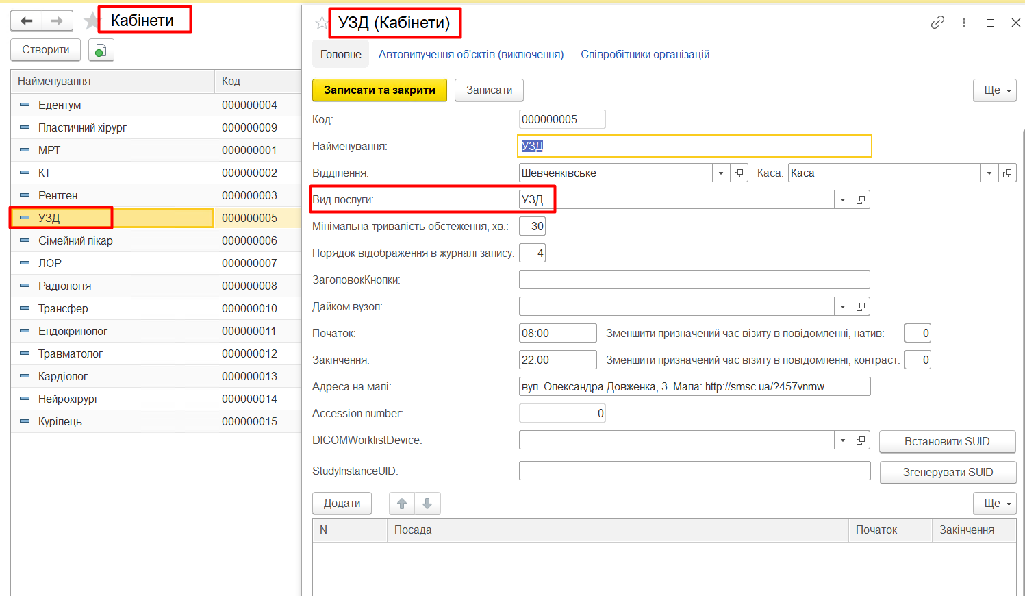 В нижній частині на закладці «Кабінети» потрібно додати кабінет.