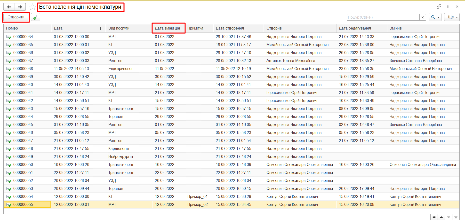 Існує єдине правило при роботі з механізмом ціноутворення: при кожній зміні параметрів номенклатури, необхідно створювати новий документ. Для створення нового документа необхідно натиснути кнопку «Створити»