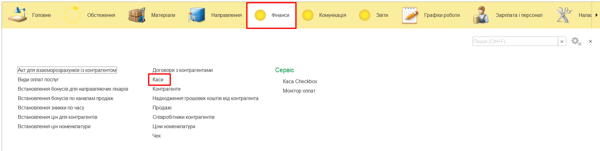 Для реєстрації фіскальної оплати в МІС реалізована робота з програмним РРО Checkbox, тобто замість фізичного апарата РРО, використовується програмний інструмент створення чеків. Тому спочатку потрібно зареєструвати організацію на Checkbox та отримати особистий кабінет, в якому будуть всі необхідні данні для налаштування каси.