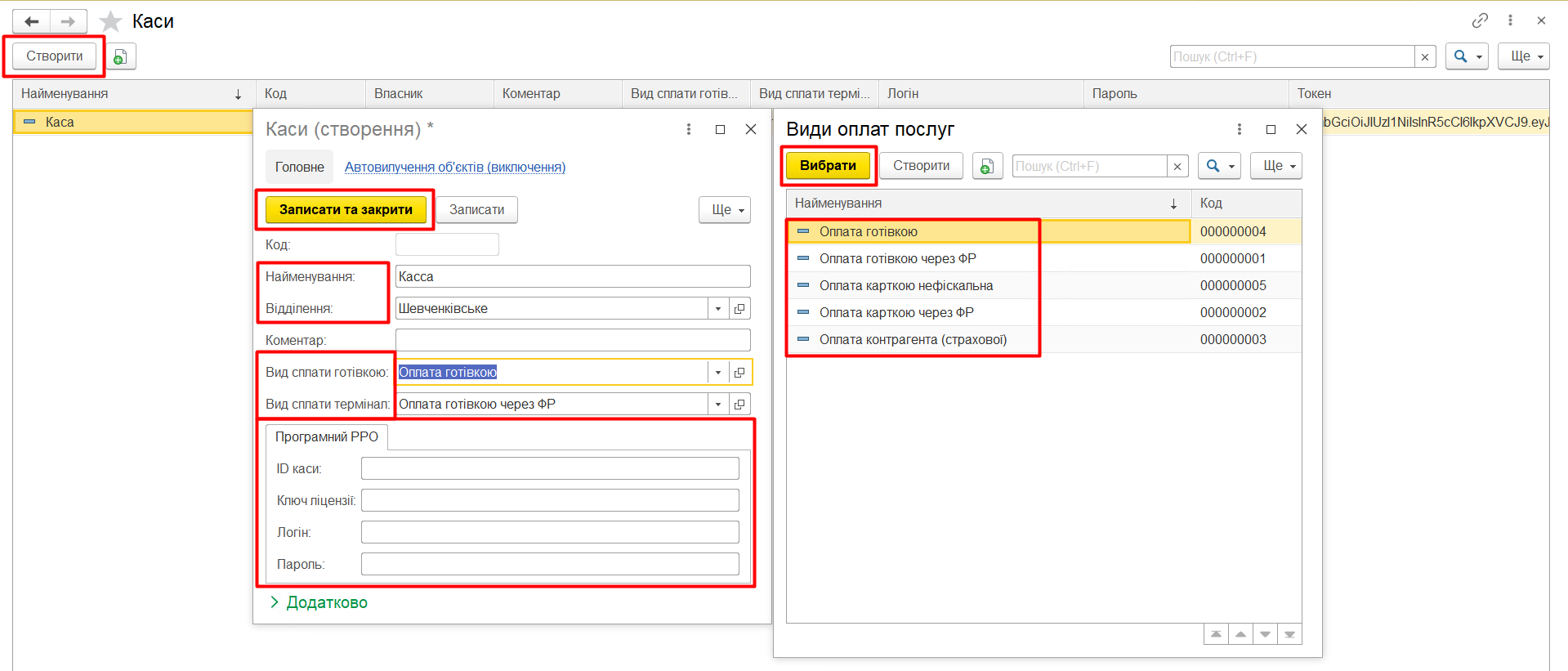 Токен автоматично згенерується після першої операції з касою.