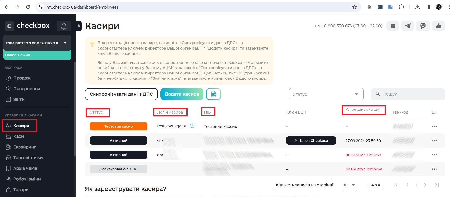 Якщо на касі постійно працює один і той же касир, тоді логін та пароль беруться з Особистого кабінета - Checkbox в розділі Касири.