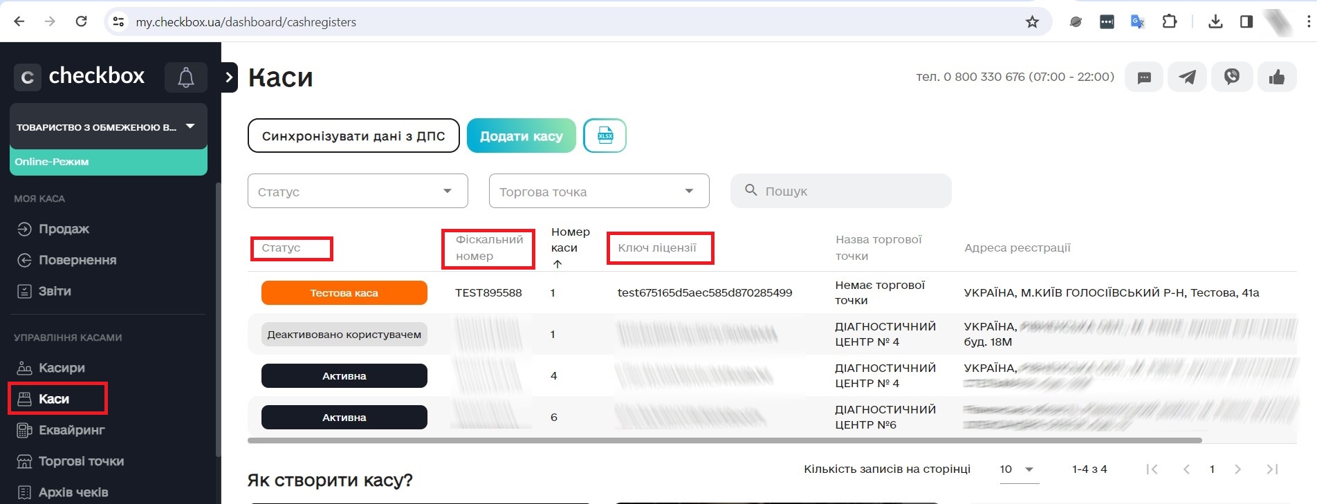 Додаємо Фіскальний номер каси та Ключ ліцензії в налаштування Каси (МІС)