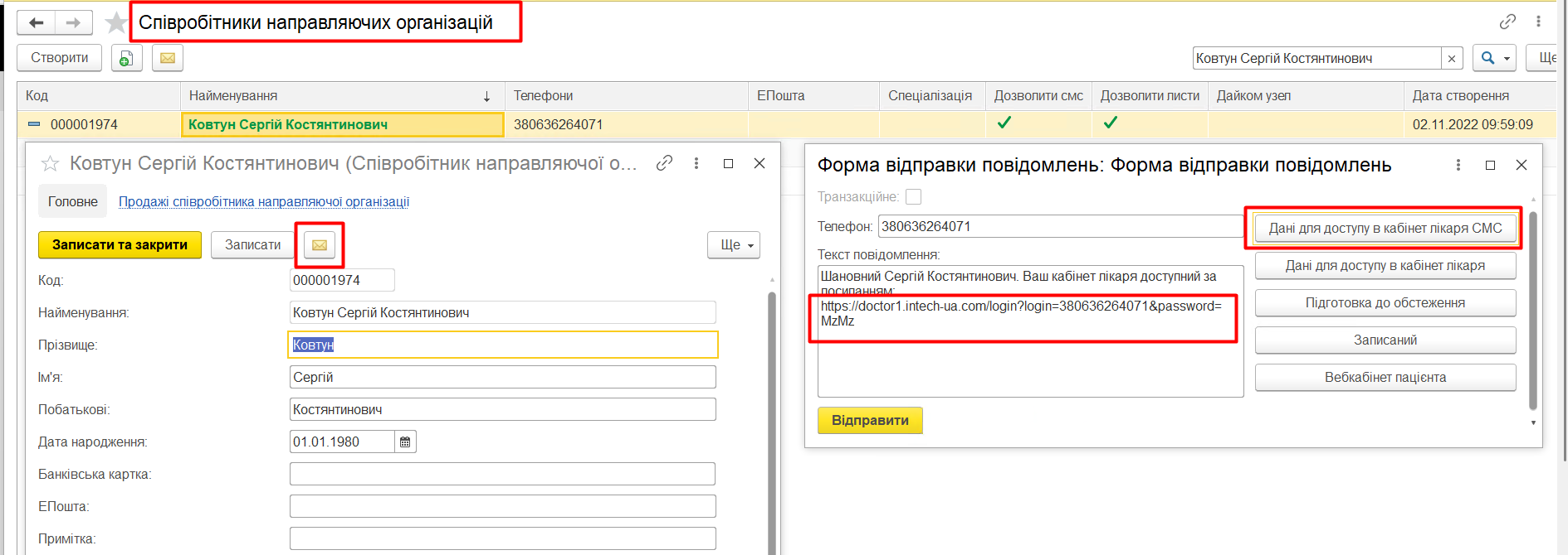 СМС шаблони направляючого лікаря - генеруються тільки з тегами для направляючого лікаря ({НаправляющийСотрудник.СсылкаНаВебКабинет}).