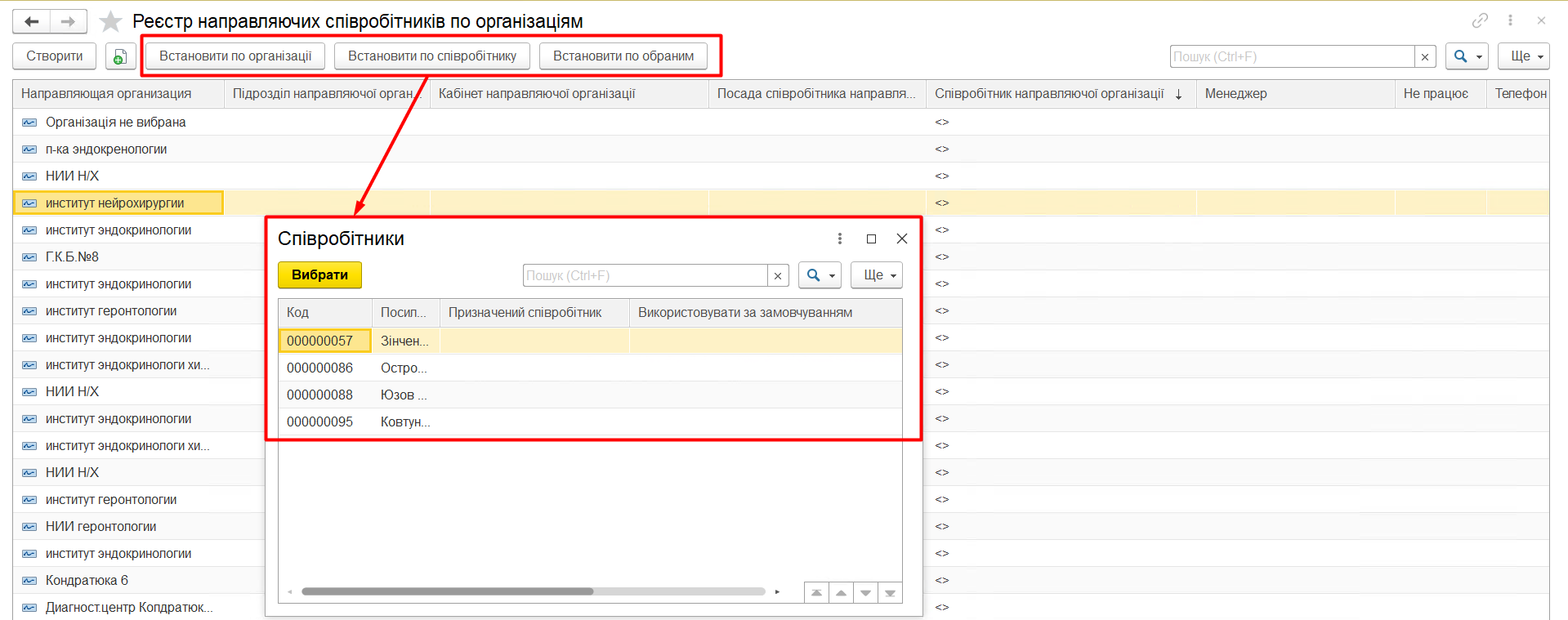 Реєстр направляючих співробітників по організаціям