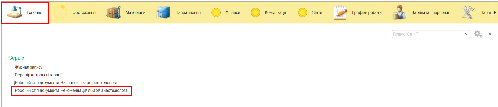 Для роботи з документом використовується спеціальна підпрограма яка знаходиться в меню «Головне» - «Робочий стіл документа Висновок лікаря рентгенолога» або «Обстеження» - «Робочий стіл документа Висновок лікаря рентгенолога»