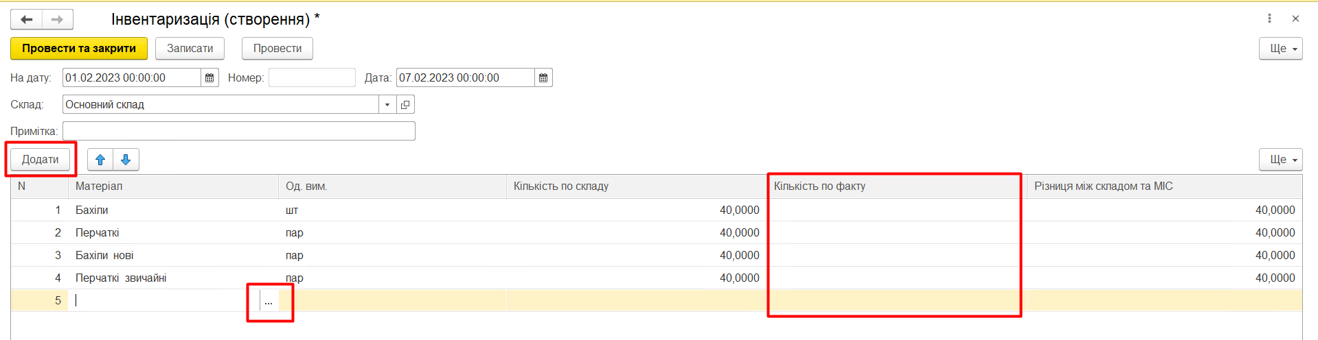МІС сама розраховує відхилення: червоним кольором зі знаком «-» вказуються недостачі, чорним – надлишки. Після заповнення стовпця документ записується та проводиться.