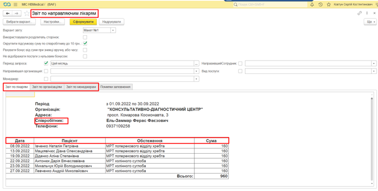 Щоб сформувати звіт необхідно відкрити «Звіти» - «Звіт по направляючим лікарям»