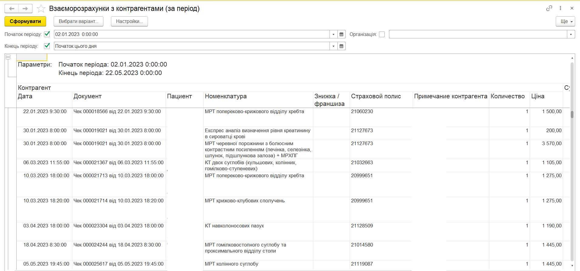 Після вибору параметрів звіту та періоду потрібно натиснути кнопку «Сформувати», яка сформує звіт за обраними параметрами.