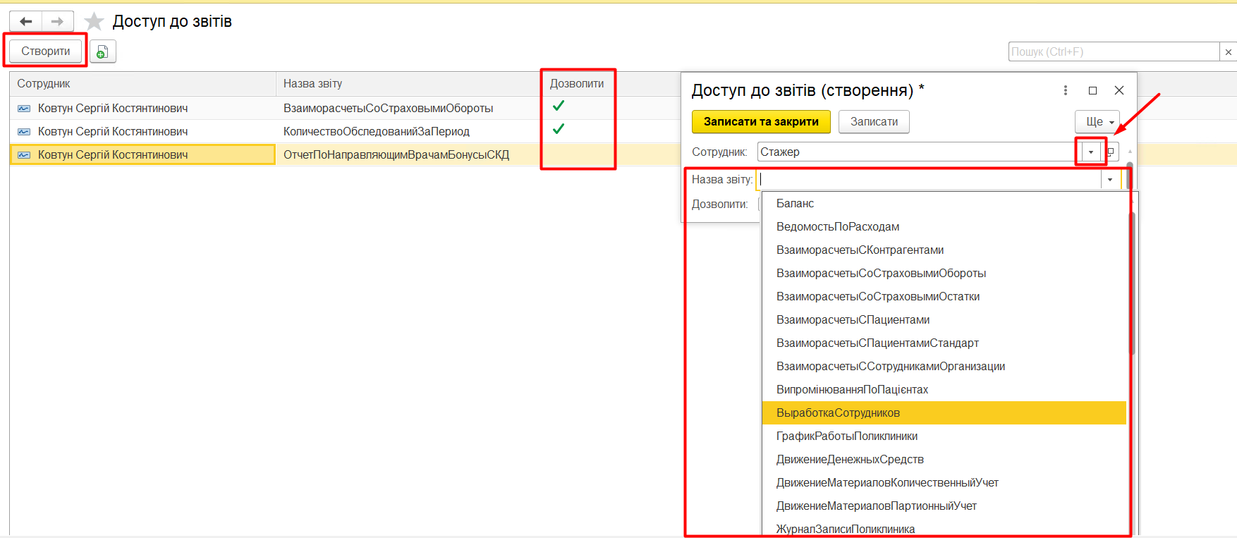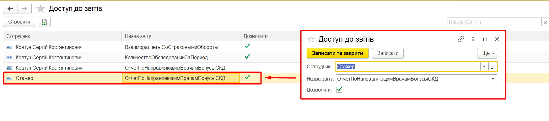 вказуємо до яких звітів обмежуємо/надаємо доступ