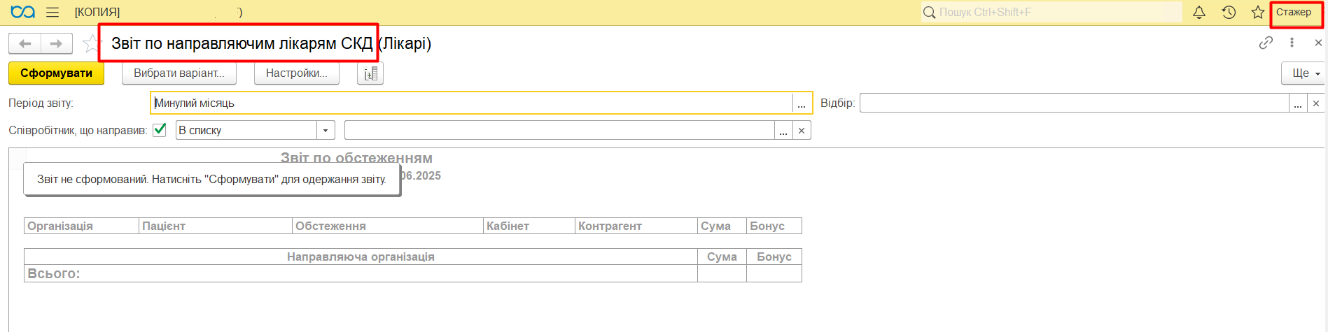 Якщо користувач увійде в розіділі Звіти йому буде доступний вказаний звіт