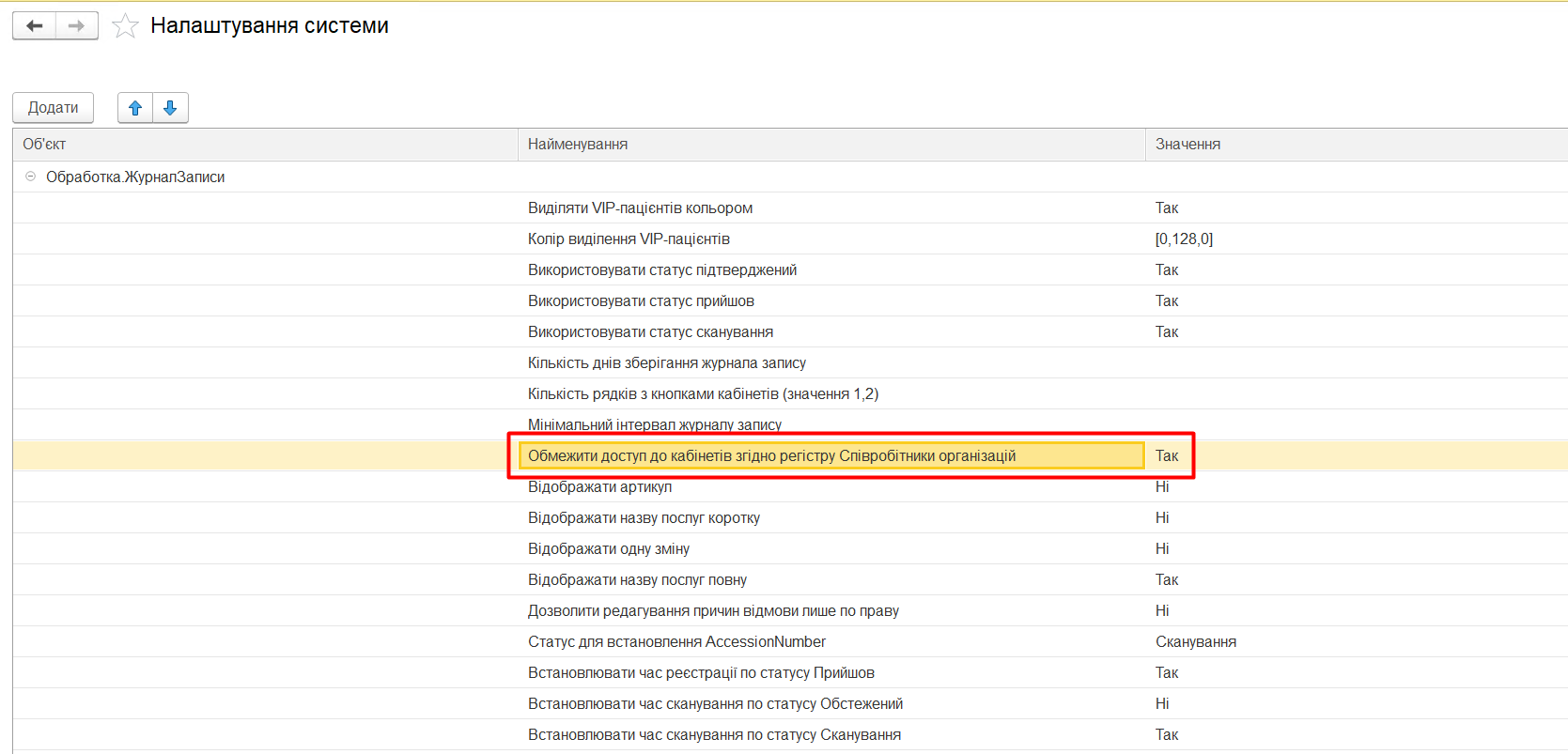 Або потрібно увімкнути налаштування системи “Обмежити доступ до кабінетів згідно регістру Співробітники організацій”