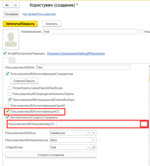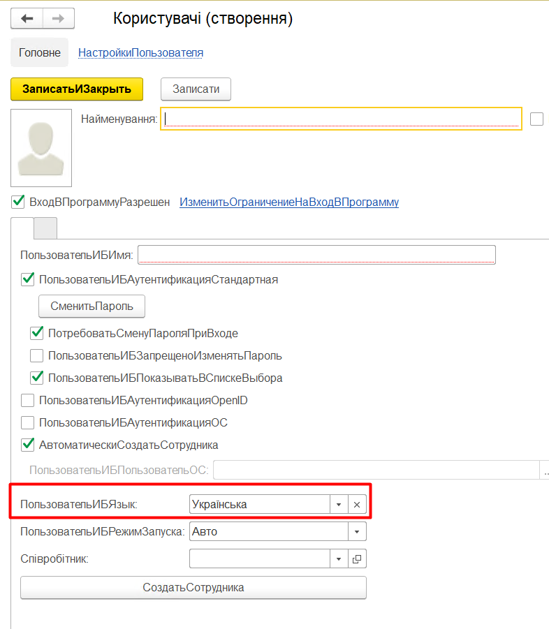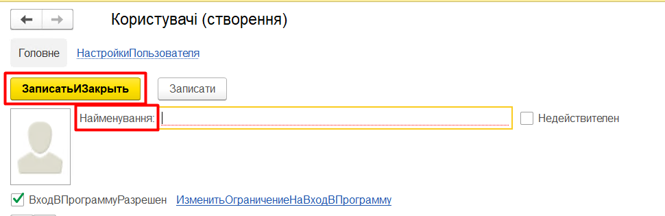 Якщо ж співробітника не потрібно створювати (наприклад, він все існує), то потрібно спочатку зняти прапорець з «АвтоматичноСтворитиСпівробітника», а потім вводити ім’я нового користувача