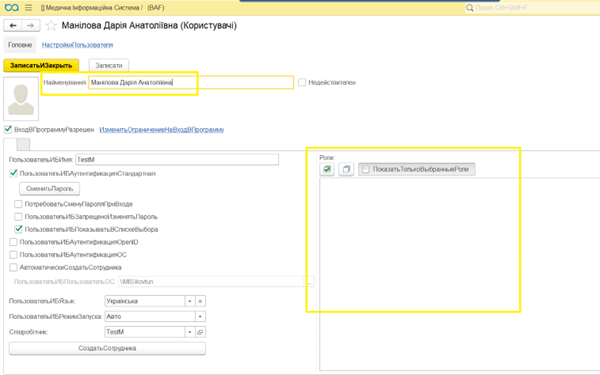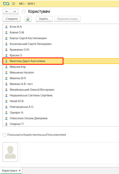 Наприклад, нам потрібно дати ролі користувачу «Манілова Дарія Анатоліївна»