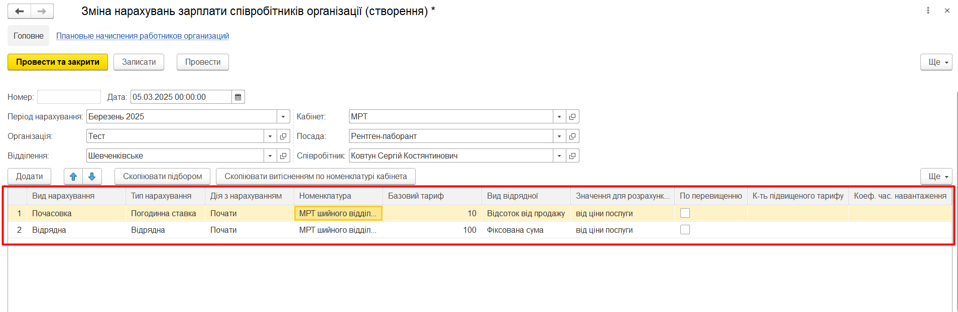Після заповнення даних для розрахунку оптати - провести та закрити документ
