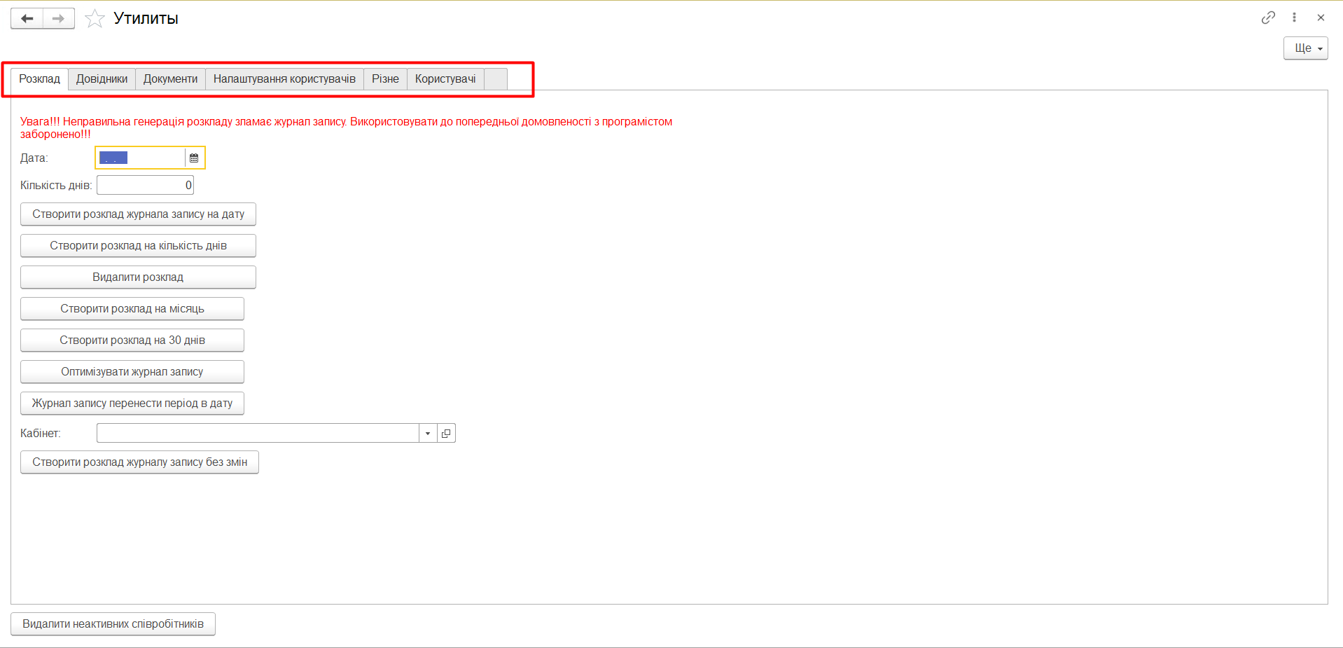 В головному меню є декілька вкладок. Потрібно перемкнутися на потрібну вкрадку й обрати необхідну дію / налаштування