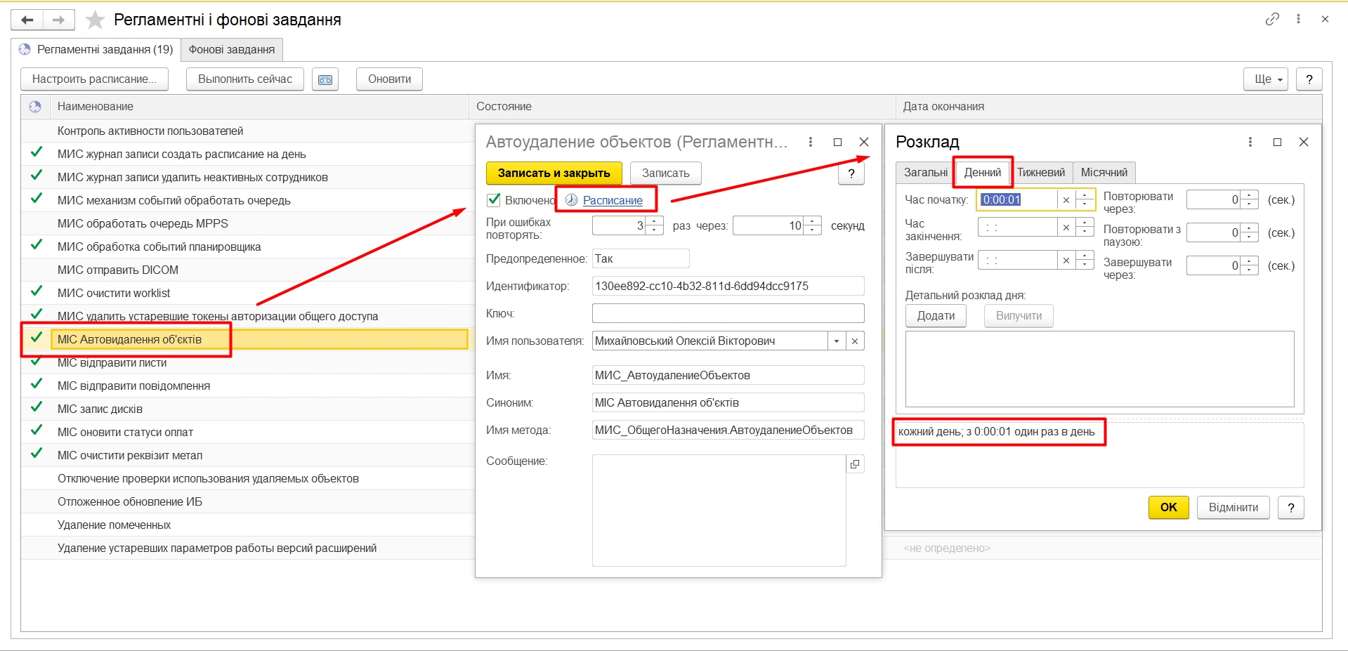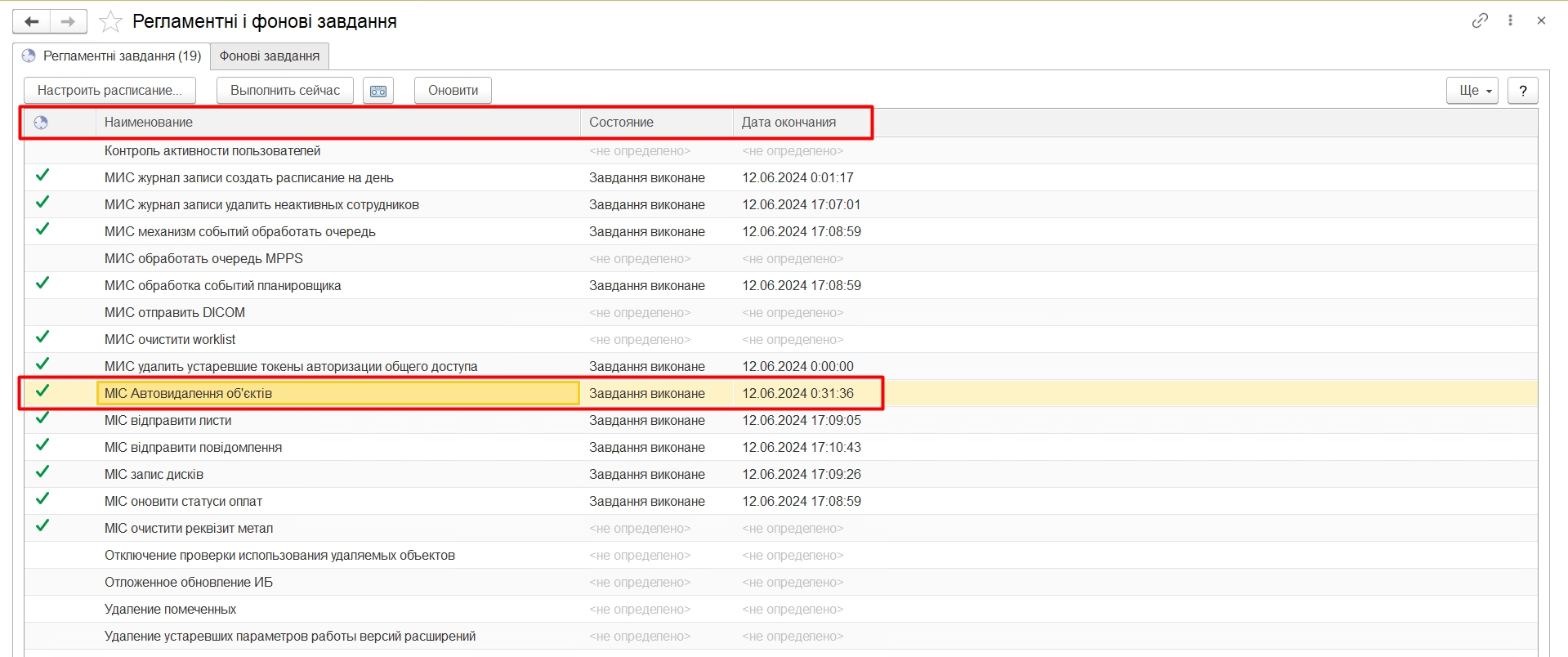 • Регламентне завдання “МІС Автовидалення об'єктів”