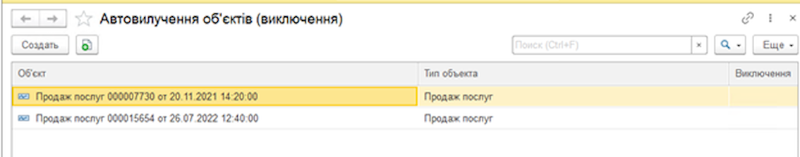 • Регістр відомостей “Видалення об'єктів (виключення)”