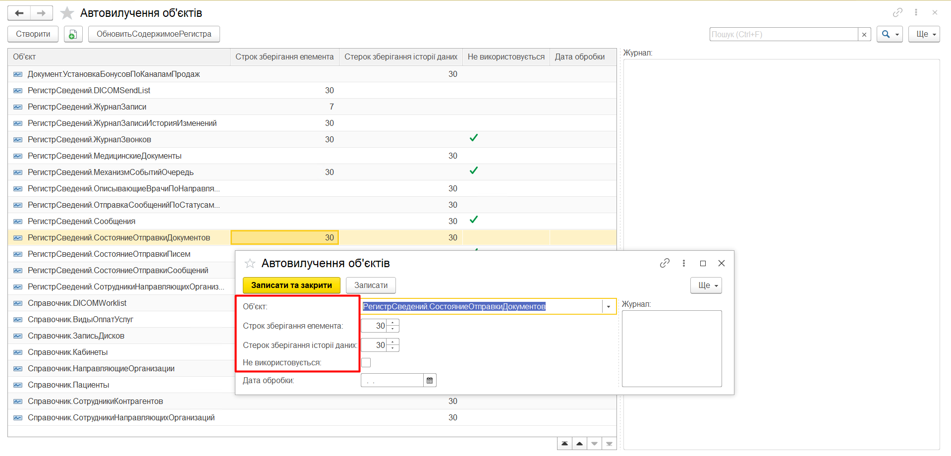 Заповнити регістр відомостей "Автовидалення об'єктів"